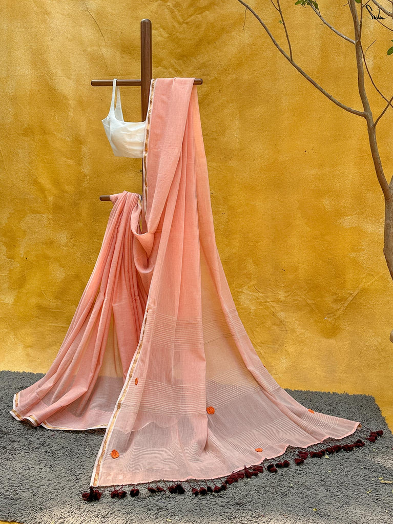 Note: Our mul sarees are slightly transparent, it’s the nature of the fabric and part of its soft, airy charm.