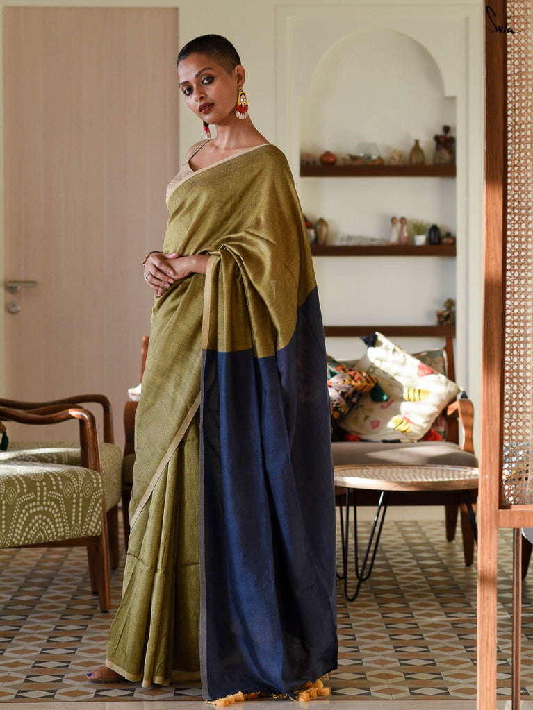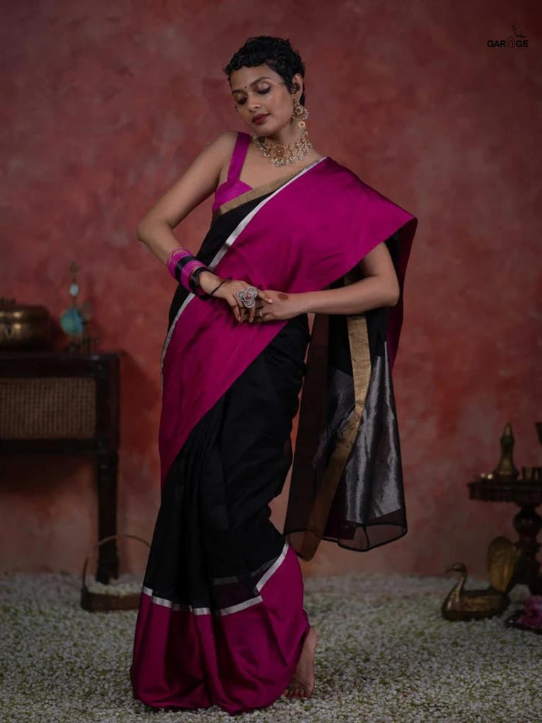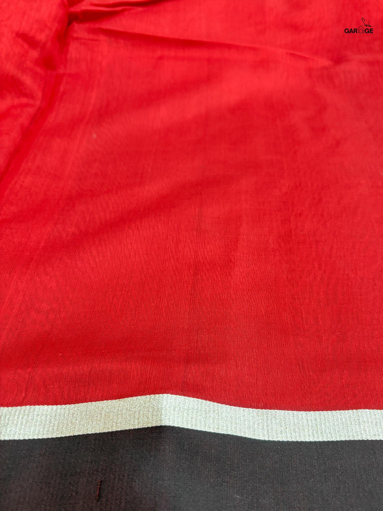 This saree is made of a gorgeous hand-woven silk fabric. Silk is a natural animal-based fiber that has centuries of history. It has always been considered the most regal of fabrics and remains the most festive, alluring fabric in the modern wardrobe as well. The fine weave of this fabric from the weaving communities of West Bengal makes it very malleable, soft, light-weight and a dream to drape. Over 40 artisans and weavers have worked to craft this collection of handloom sarees and the weavers create magic on their looms, as they take 20 days and sometimes 25 days to weave one single saree, and pour their love into the fabric for it to take life in our wardrobe. And, when the fabric takes shape, the characteristic shine of the silk and the comfort of its texture inevitably become a combination that can win hearts over.