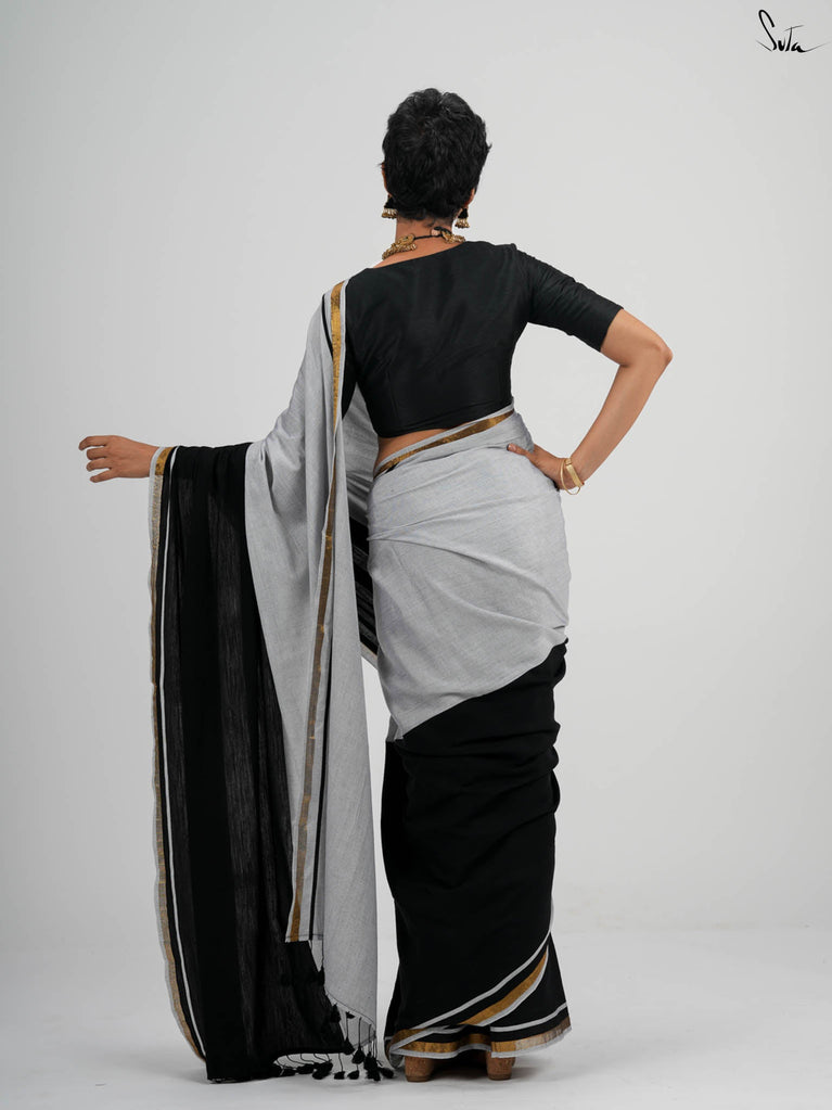 Cotton fabric dates back to some of the most ancient civilisations and it has a strong presence in the modern wardrobe as well. The softness and lightness of cotton combined with its strength and versatility makes it one of the most popular choices, especially for the Indian climate. We took this simple, elegant fabric and combined it with acrylic for that added sheen and voila! We love what we see and the saree falls so beautifully that it feels like second-skin!