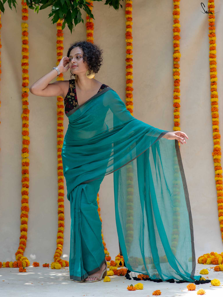 Note: Our mul sarees are slightly transparent, it’s the nature of the fabric and part of its soft, airy charm.