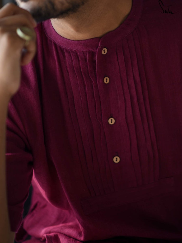 This maroon handloom cotton short kurta with half-sleeves is a breezy comfortable piece that will keep you at ease all day long and yet make a style statement.