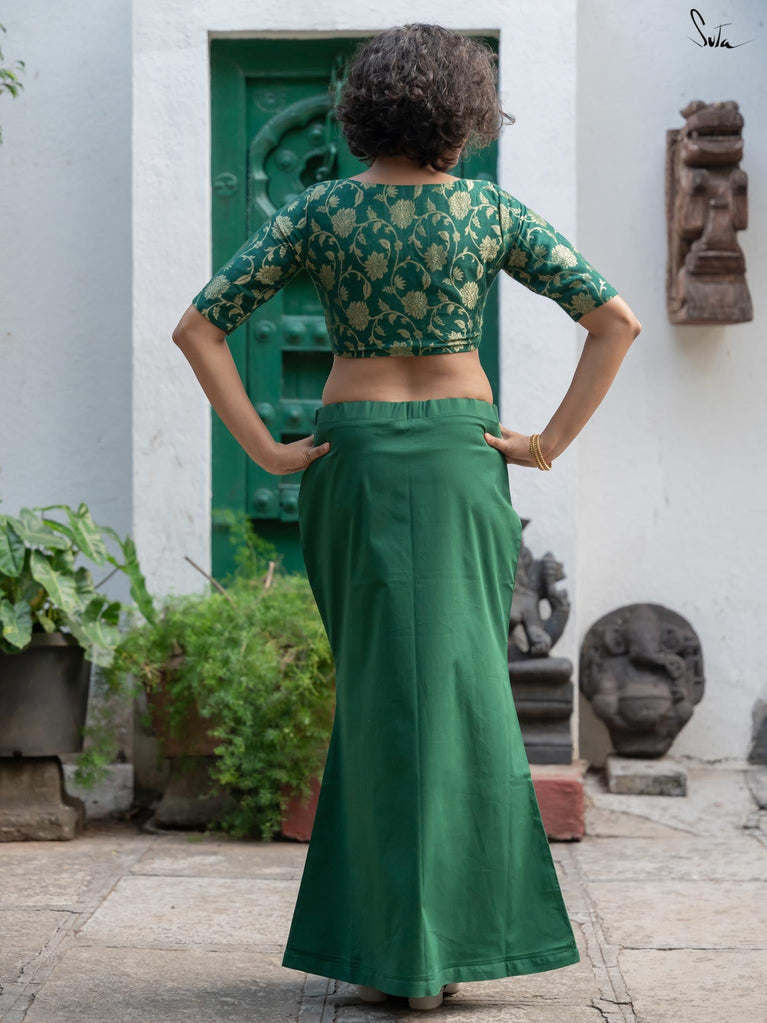Indulge in the magical comfort of Emerald Gills, an underskirt crafted from breathable cotton lycra! The stretchable design ensures a full range of motion, creating a flawless silhouette that makes you feel confident and radiant. Wrapped in luxurious dark green, this underskirt is a masterclass in blending comfort and style.