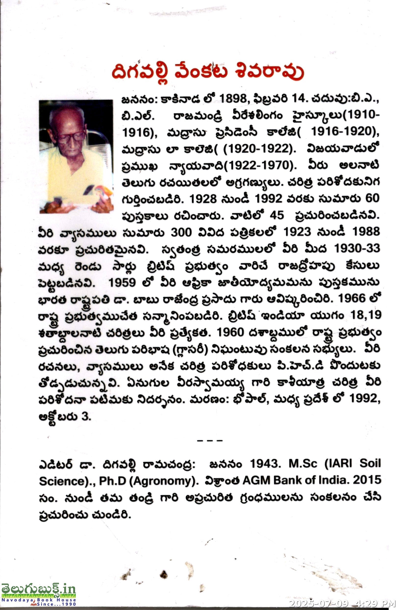 Digavalli Venkata Shivarao Na Sahitya Jeevithamu
