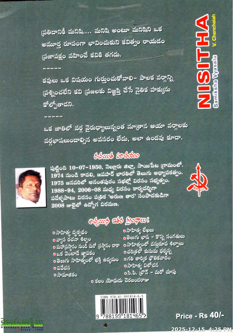 Andhrula Abhimana Rachayithri Yaddanapudi Sulochanarani Sahitya Vivechana