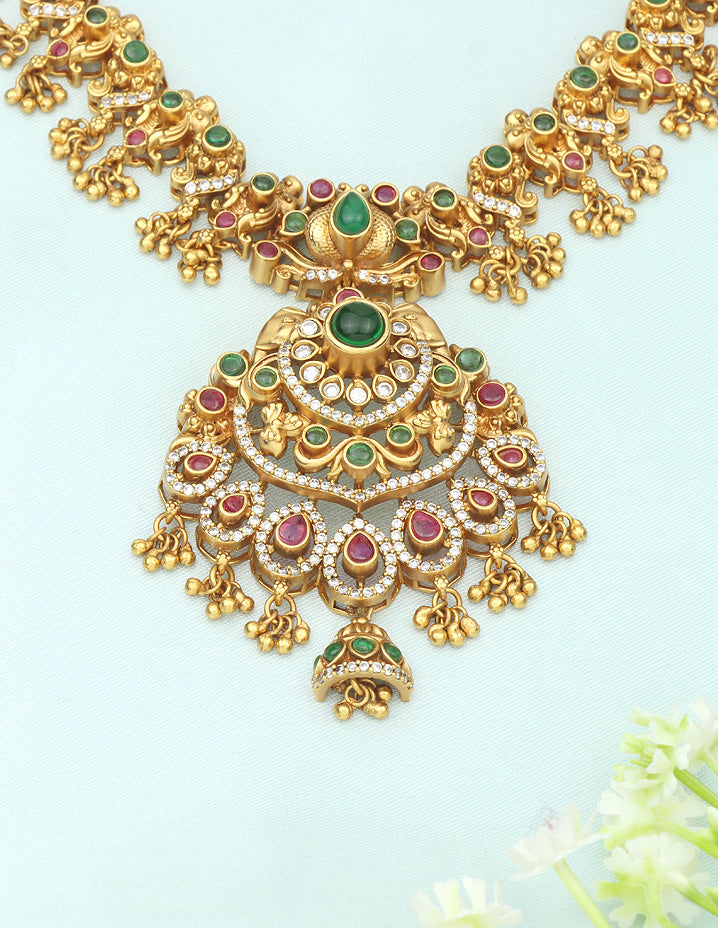 Designer Matt Zirconia Long Haaram Set