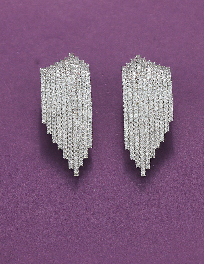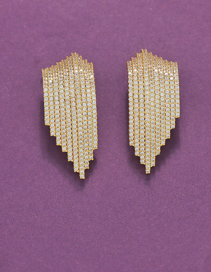 Dazzling layers of shimmering crystals flow gracefully in a cascading wing design, creating a statement of elegance and brilliance for any occasion.
