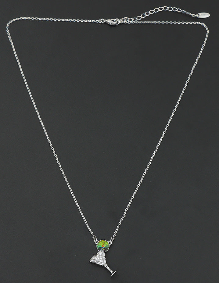 Add a splash of glam to your look with this chic martini glass pendant, topped with a shimmering blue crystal — perfect for party vibes! 🍸💙✨