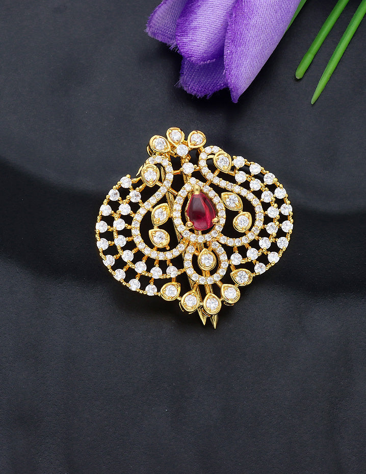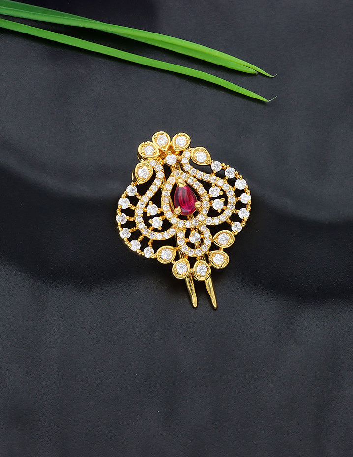 Designer Gold Polish CZ Choti Piece With Ruby Stone