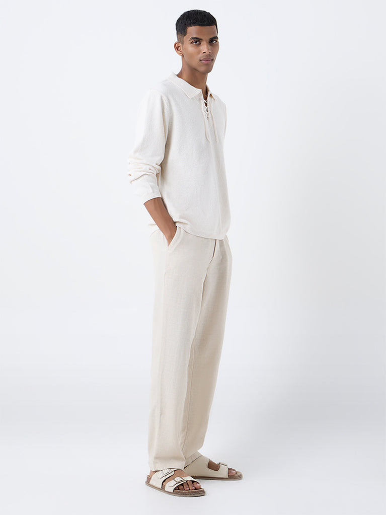 Ascot Cream Knit-Textured Relaxed-Fit Sweater