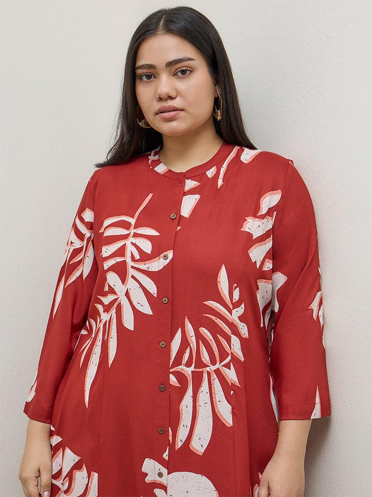 A vibrant addition to your ethnic rotation, this red kurta from Diza is highlighted with bold botanical prints that bring colour and warmth to the look. Shaped in an A-line silhouette, it features a mandarin neck, button-up front, and three-quarter sleeves for a balanced profile. Crafted from a breathable fabric and finished with side pockets, it offers all-day comfort for festive lunches, casual celebrations, or everyday ethnic dressing.