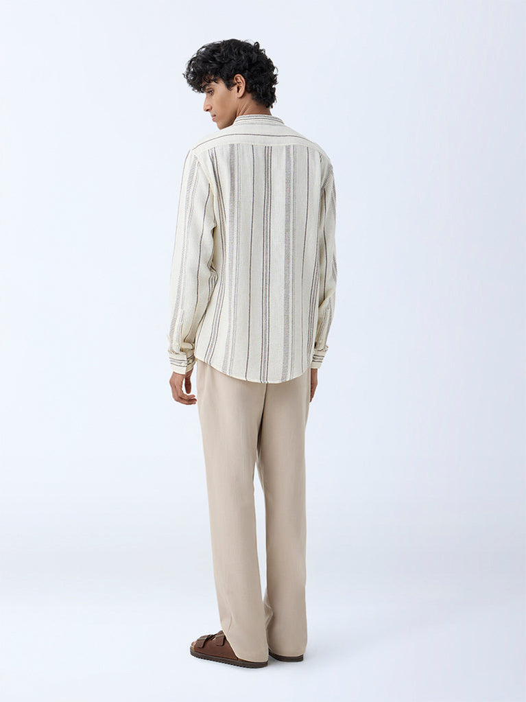 ETA Light Beige Self-Striped Relaxed-Fit Cotton Shirt
