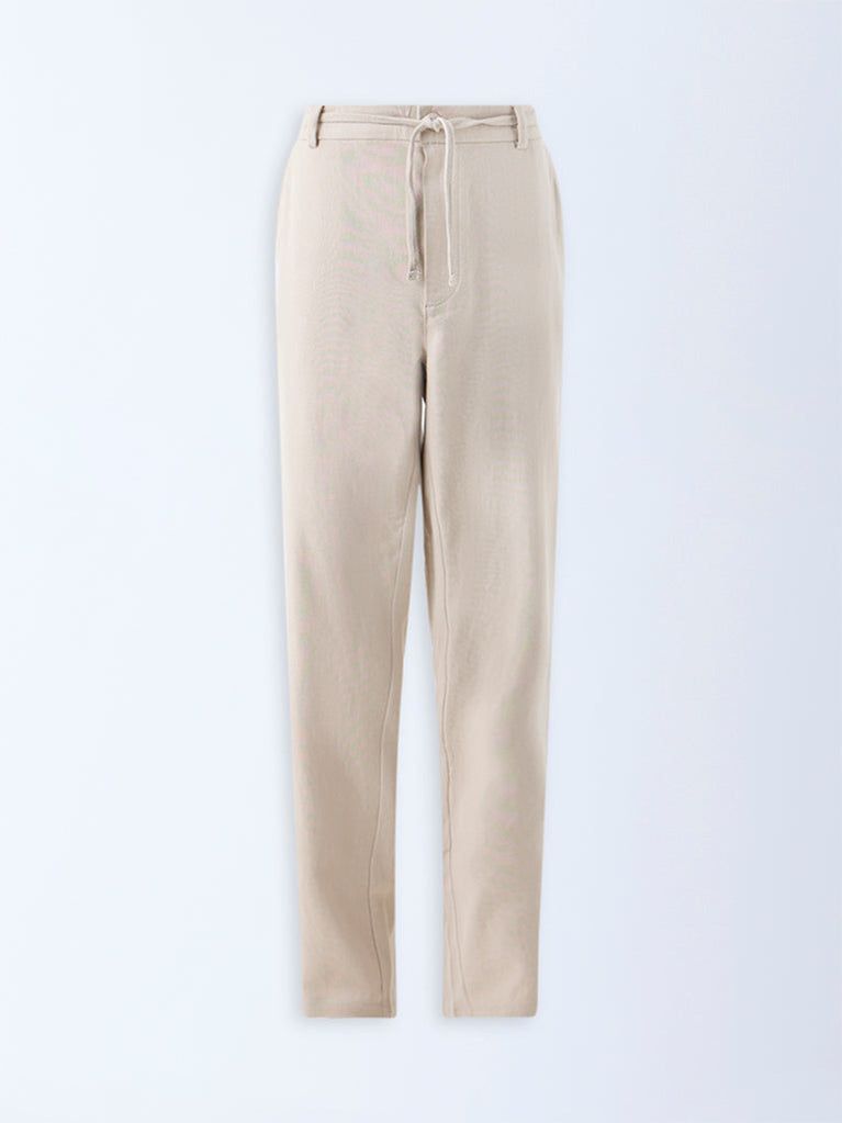 These off-white pants from Bombay Paisley blend everyday ease with understated charm. Woven from a cosy cotton-blend fabric, they feature a clean silhouette with an adjustable drawstring waistband for a comfortable fit. Multiple pockets complete the look with a touch of practical detail.