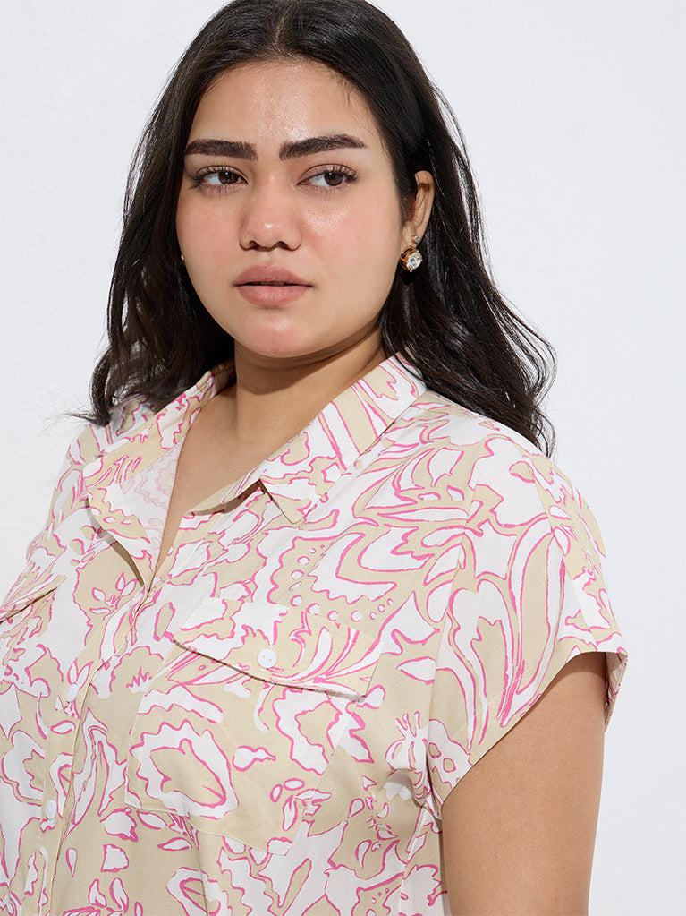 Gia Beige Scenic-Inspired Cotton-Blend Shirt