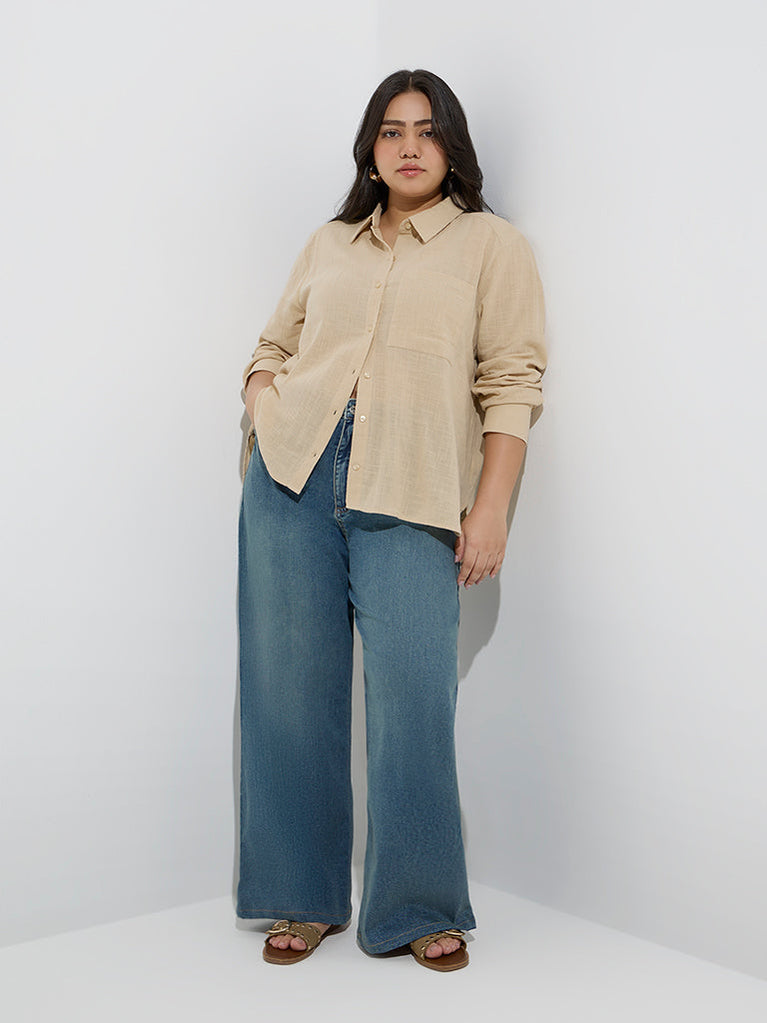 ETA Beige Self-Patterned Relaxed-Fit Cotton Shirt