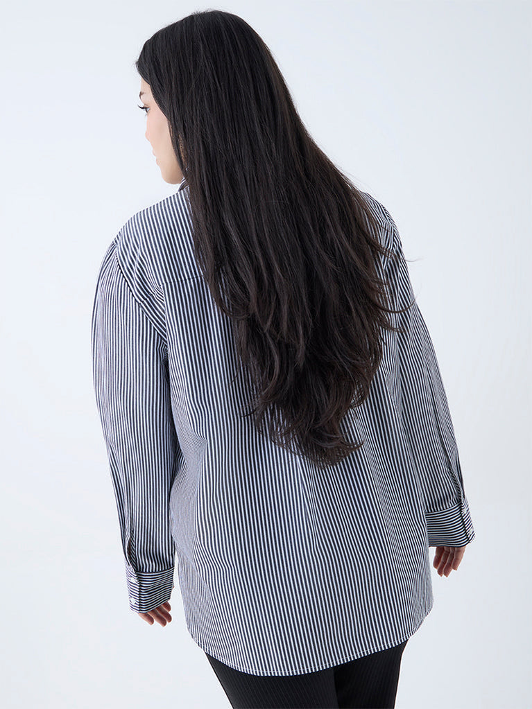 ETA Black Striped Relaxed-Fit Cotton Shirt