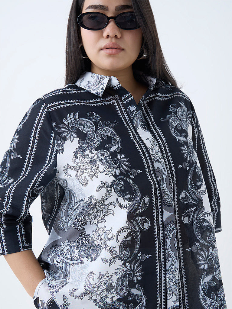 Bombay Paisley Black Floral Embroidered Cotton-Blend Shirt