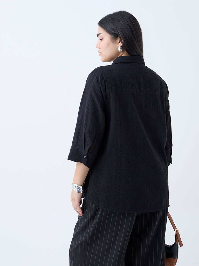 ETA Black Crinkle Textured Relaxed-Fit Cotton Shirt