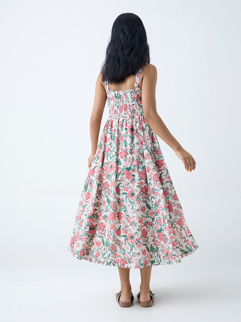 Bombay Paisley White Floral Patterned Cotton Tiered Dress