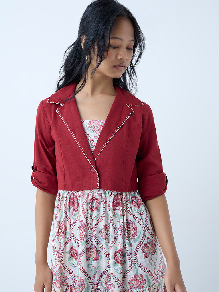 Bombay Paisley Red Floral Cotton Tiered Dress with Jacket