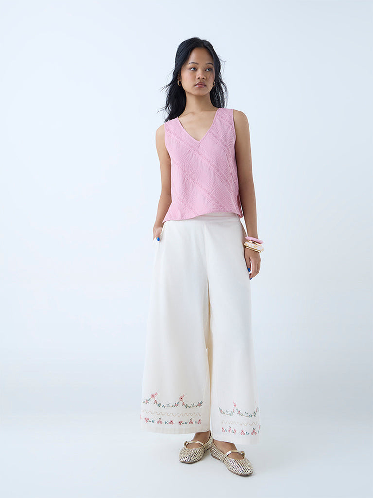 Diza White Floral Embroidered Ethnic Pants