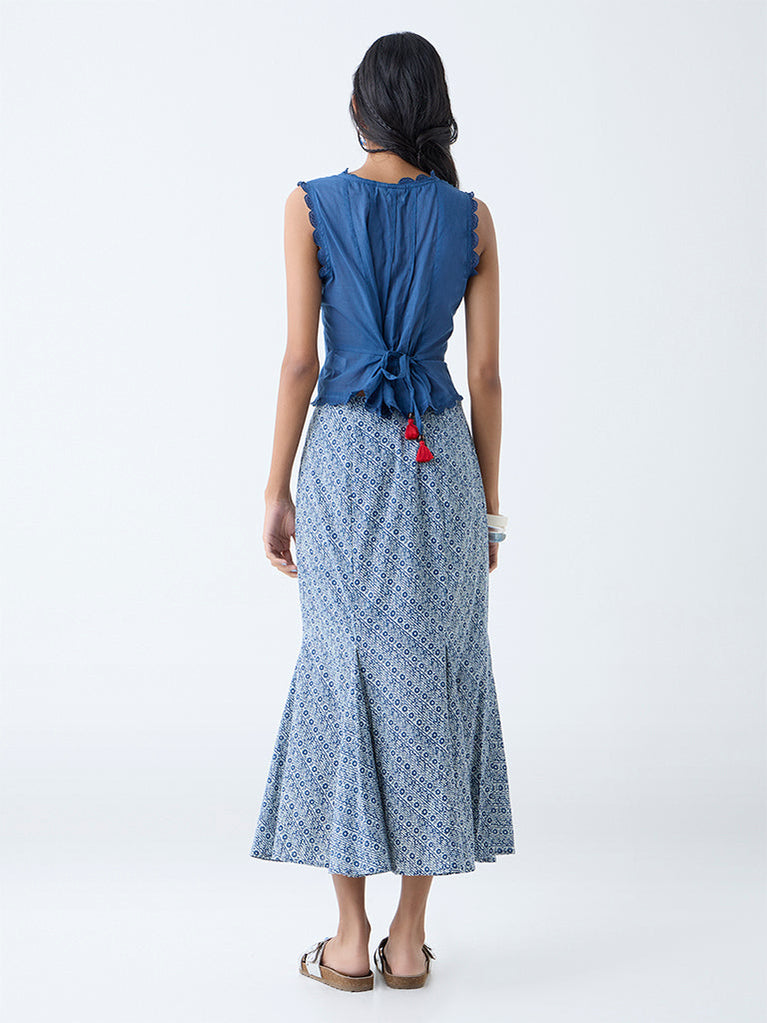 Bombay Paisley Indigo Scallop Detailed Cotton Top
