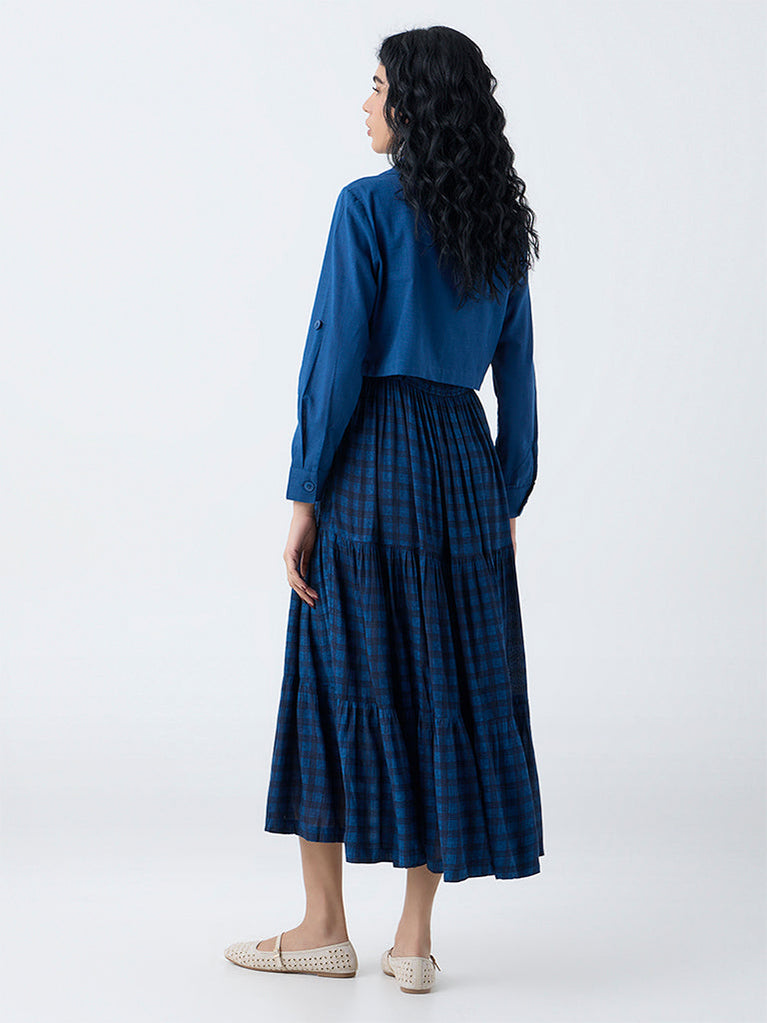 Bombay Paisley Dark Blue Checkered Tiered Dress with Jacket