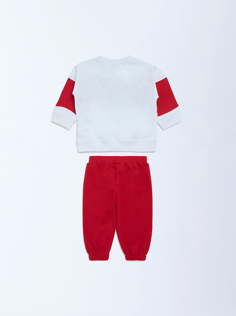 HOP Baby Red Colour-Blocked Cotton Sweatshirt and Joggers Set