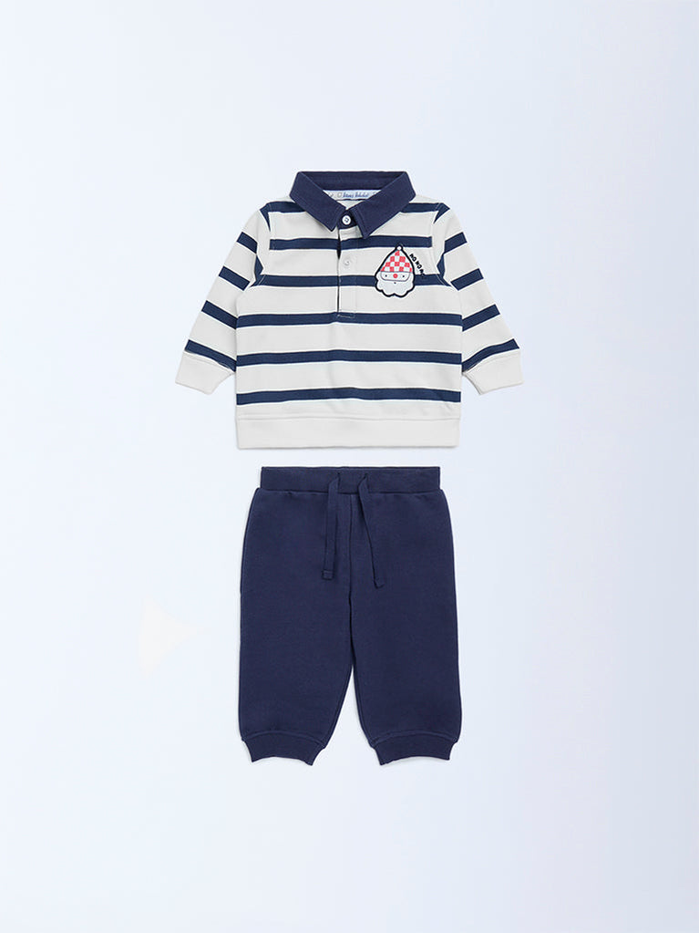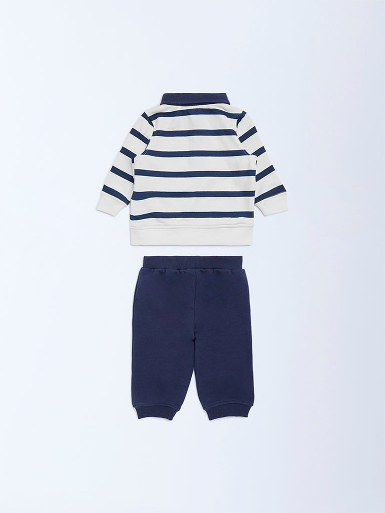 HOP Baby Navy Striped Cotton Sweatshirt with Joggers Set