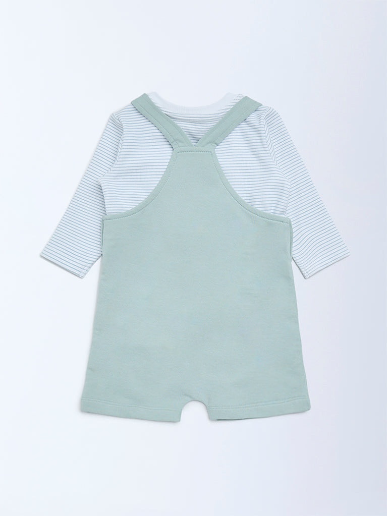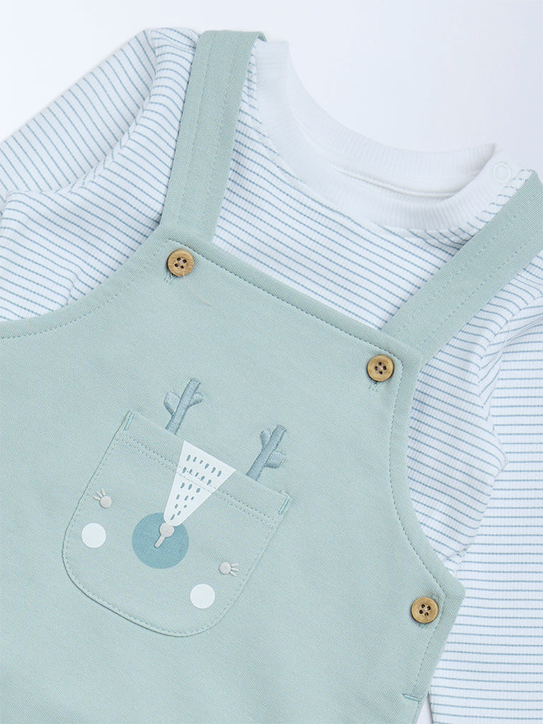 HOP Baby Sage Embroidered Cotton Dungaree and T-Shirt Set