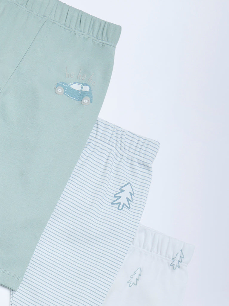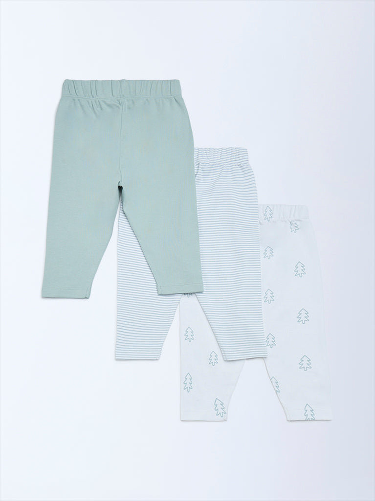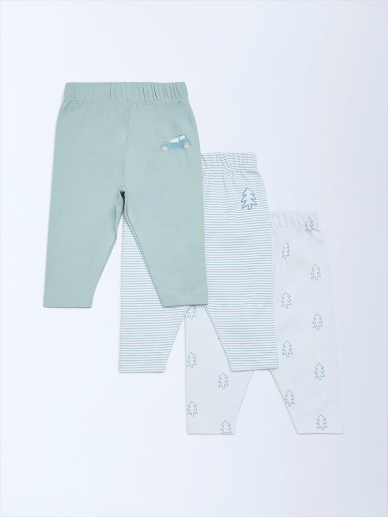 HOP Baby Sage Printed Mid-Rise Cotton Pants – Pack of 3