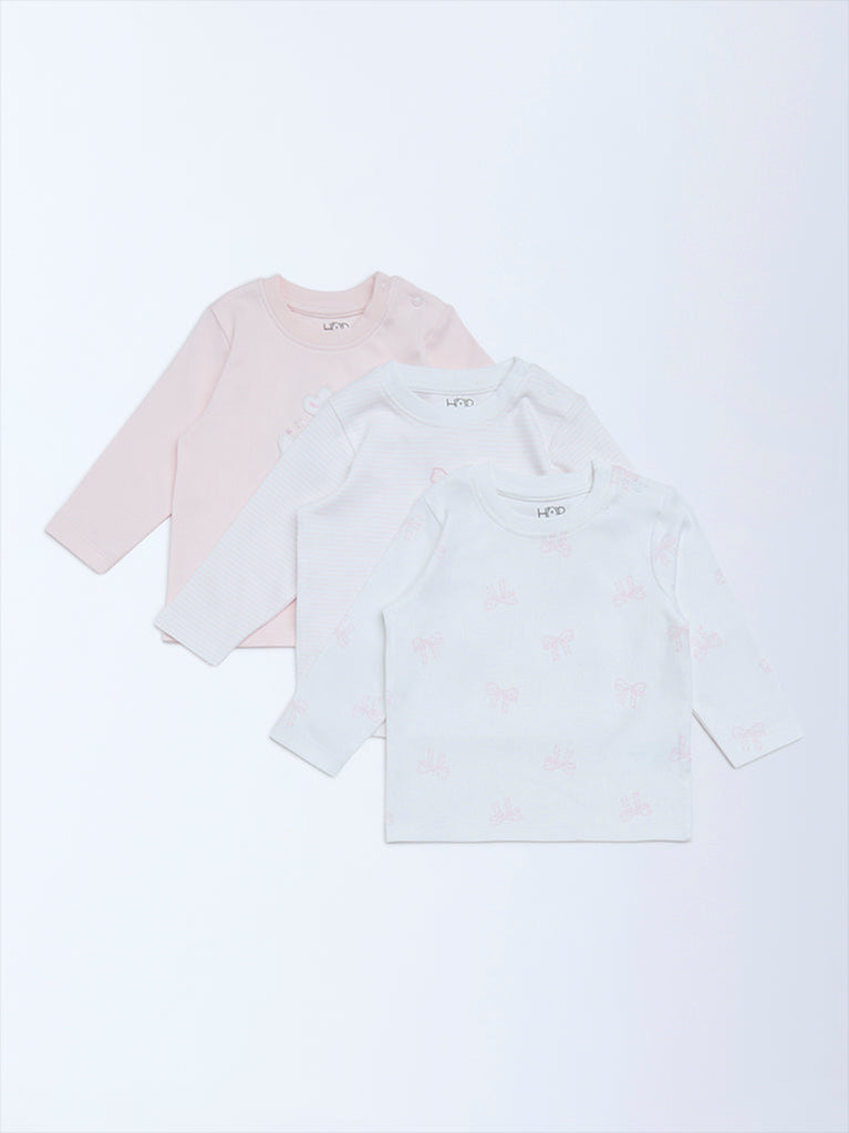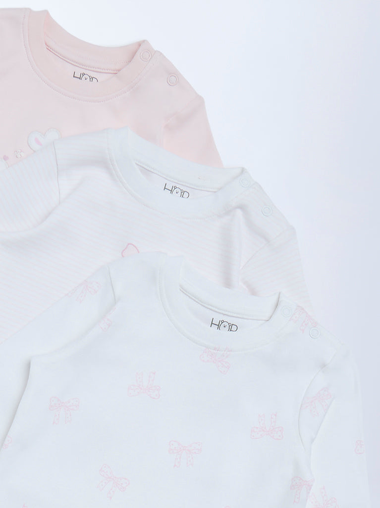 HOP Baby Pink Printed Cotton T-Shirt – Pack of 3