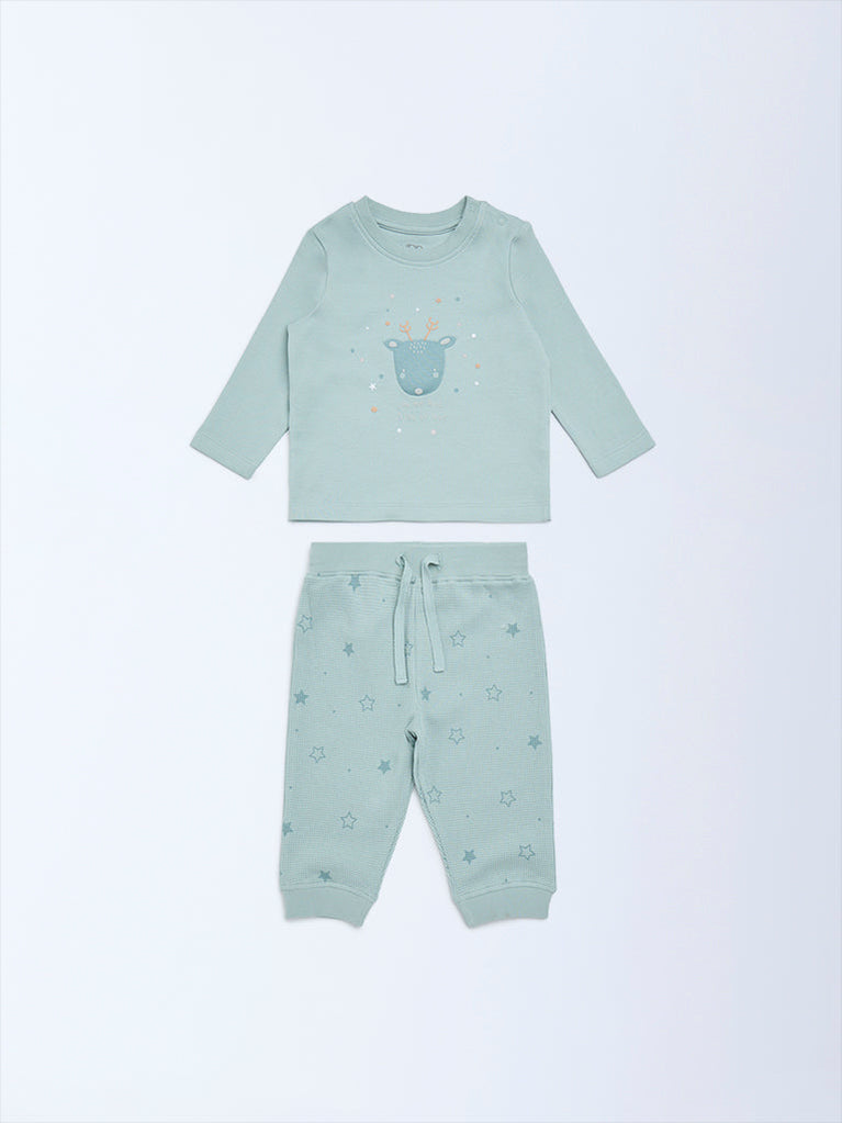 HOP Baby Sage Animal Design Cotton T-Shirt and Joggers Set