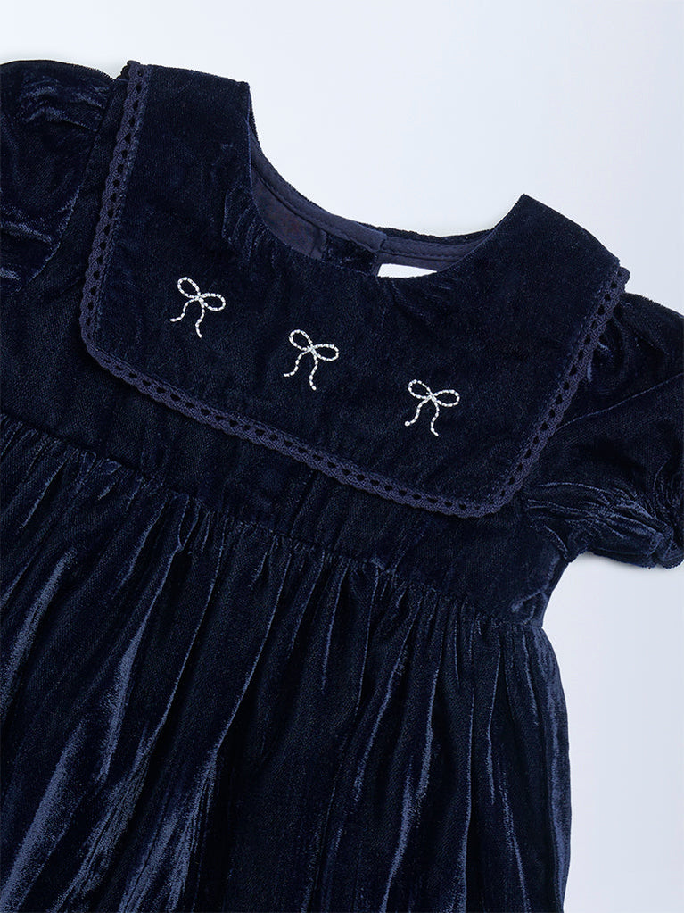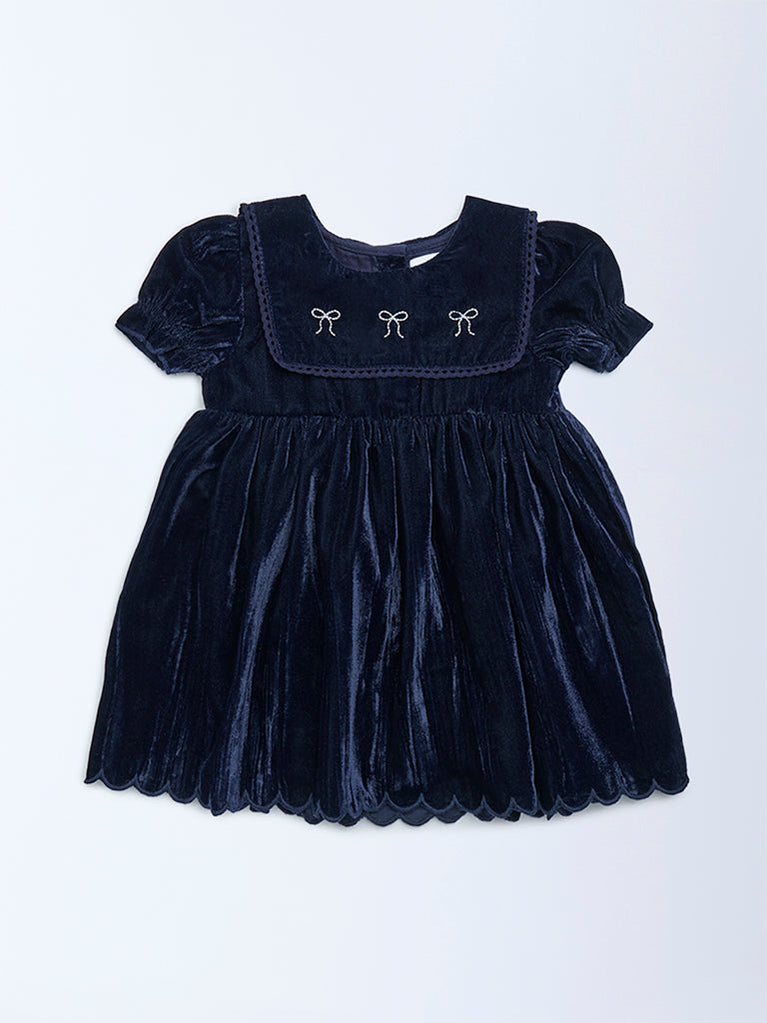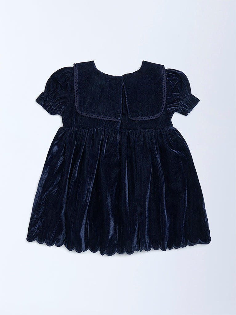 HOP Baby Navy Fit-And-Flare Velvet Dress