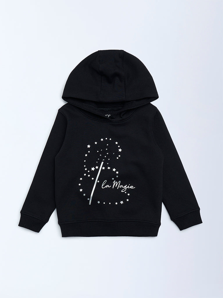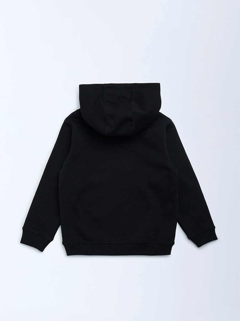 HOP Kids Black Printed Cotton-Blend Hoodie