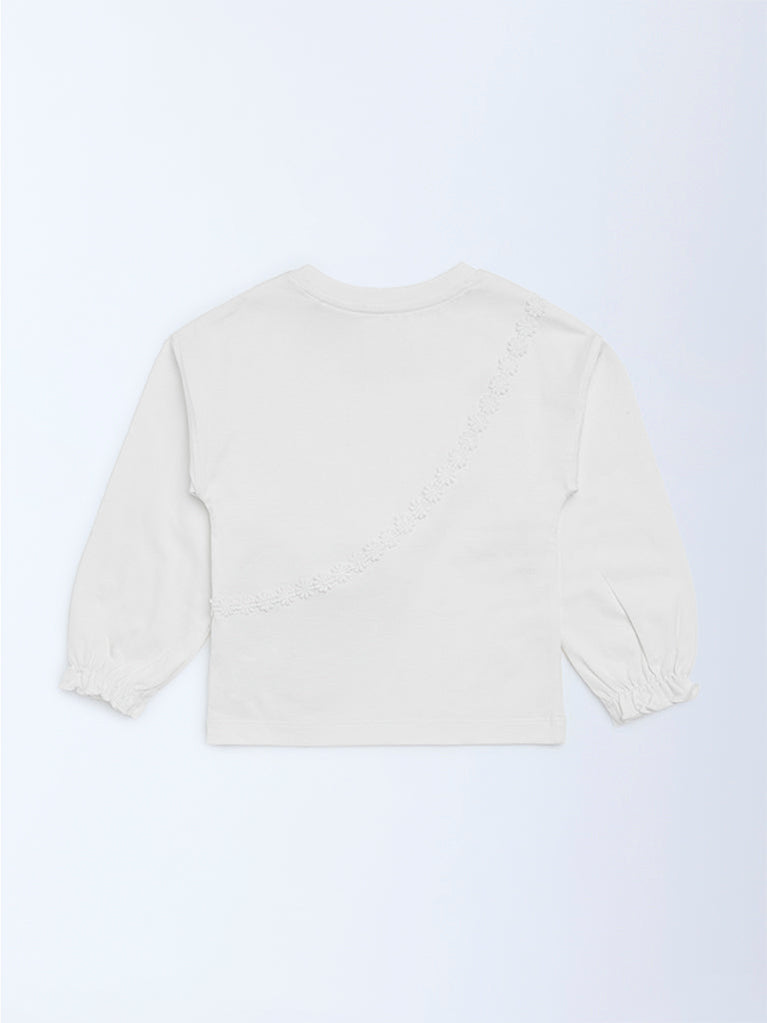 Thoughtfully designed for comfort and charm, this white pinafore set by HOP Baby is a delightful choice for outings and photos. The pinafore is adorned with cute front embroidery and finished with button closures for quick, fuss-free changes. The accompanying top is crafted from a soft crinkle-textured fabric and features a schiffli-detailed Peter Pan collar and blouson sleeves, adding a gentle, dressed-up touch parents will love.