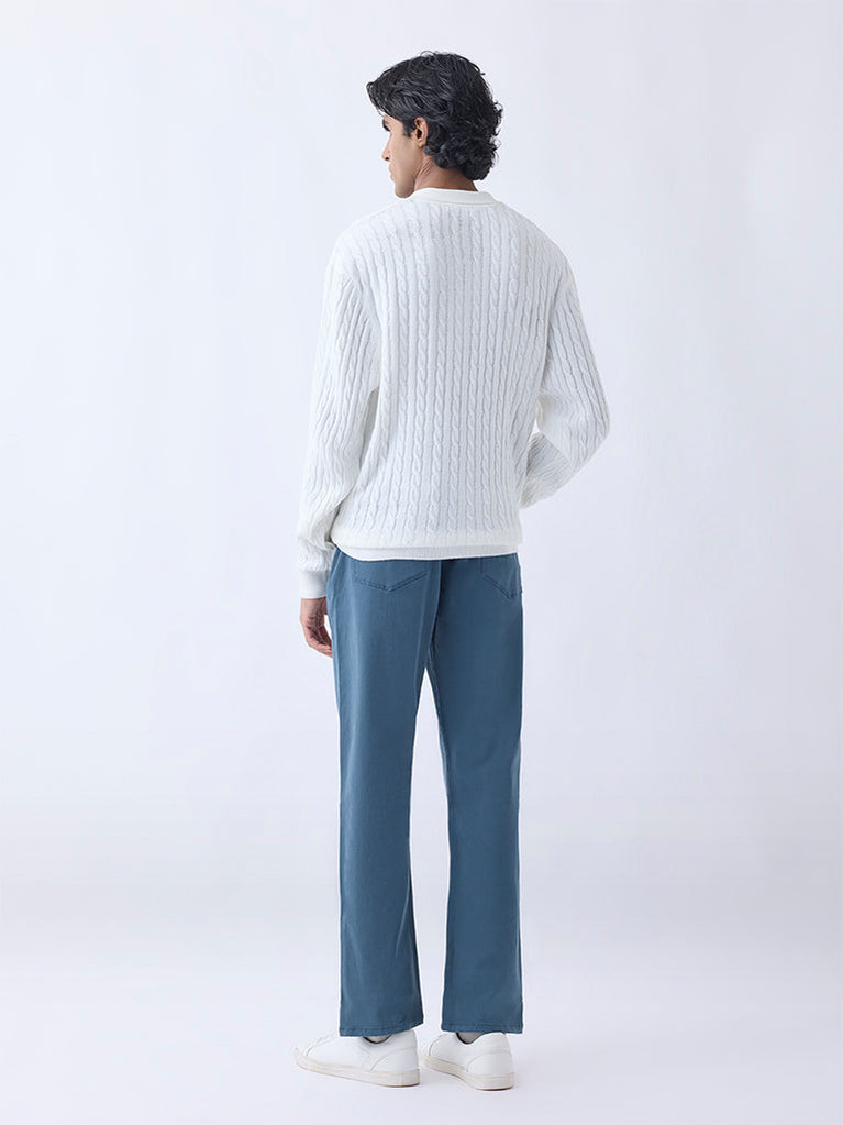 Ascot presents these white jeans in a relaxed cut, offering both comfort and style. Crafted from soft, breathable fabric, this mid-rise bottom wear features a smooth buttoned waistband, belt loops, a zipper fly, and multiple pockets for practical flair.