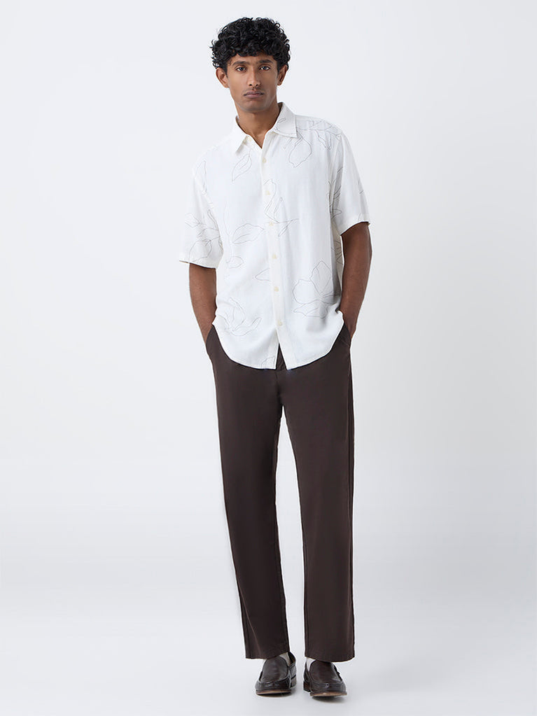 ETA Brown Self-Patterned Relaxed-Fit Cotton-Blend Shirt