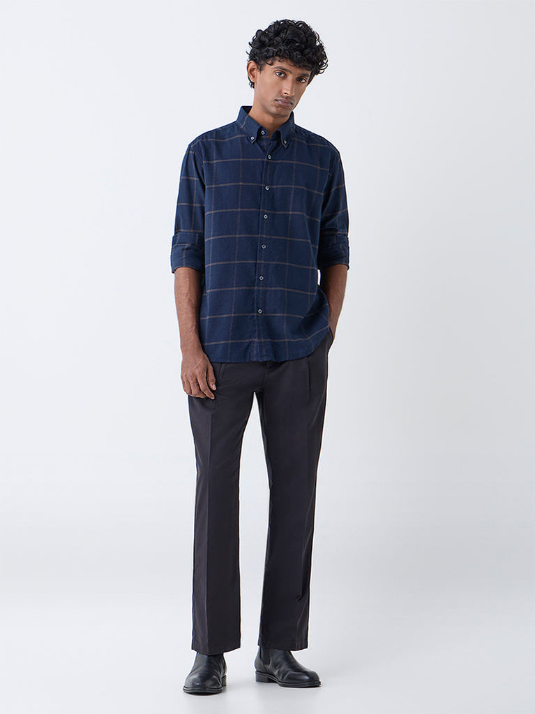 Redefine modern sophistication with this navy shirt from Ascot. Crafted from premium cotton for a crisp, polished feel, it’s designed with full sleeves and a classic collar. Subtle checks and precisely finished seams lend it a contemporary edge, making it an effortless choice for every setting.