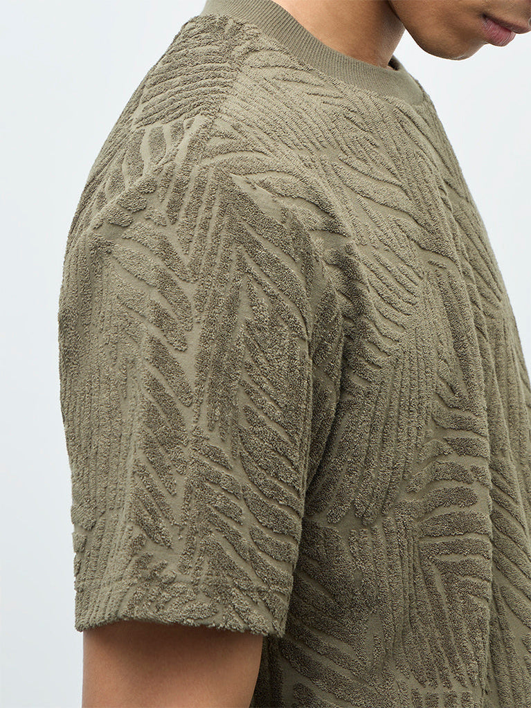 ETA Olive Textured Relaxed-Fit Cotton-Blend T-Shirt