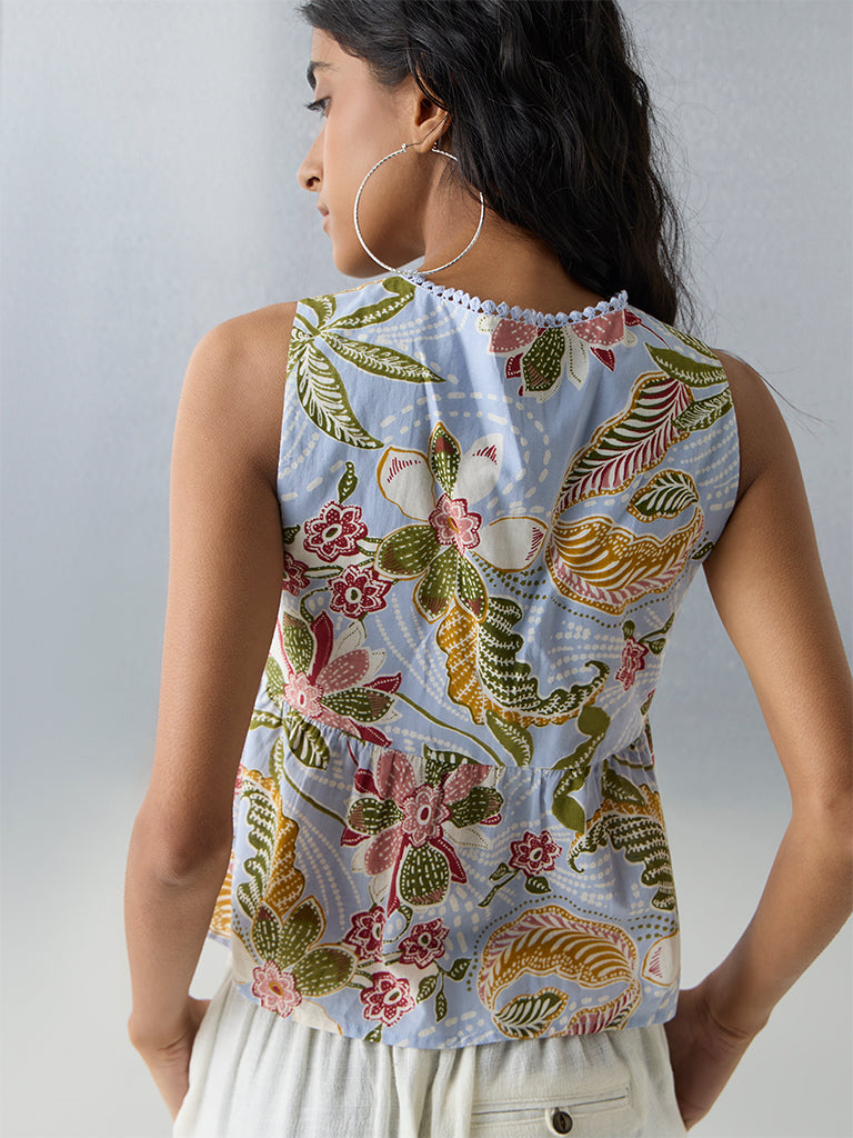 Bombay Paisley Light Blue Floral Design Cotton Top