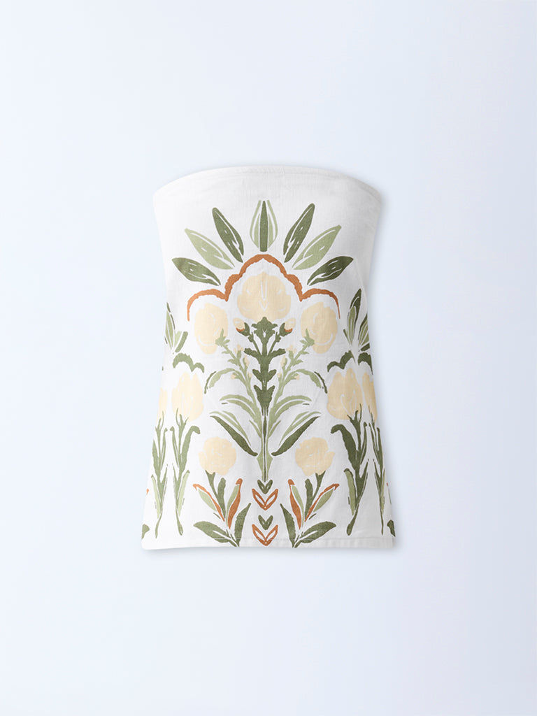 Bombay Paisley White Foliage Print Cotton-Blend Tube Top