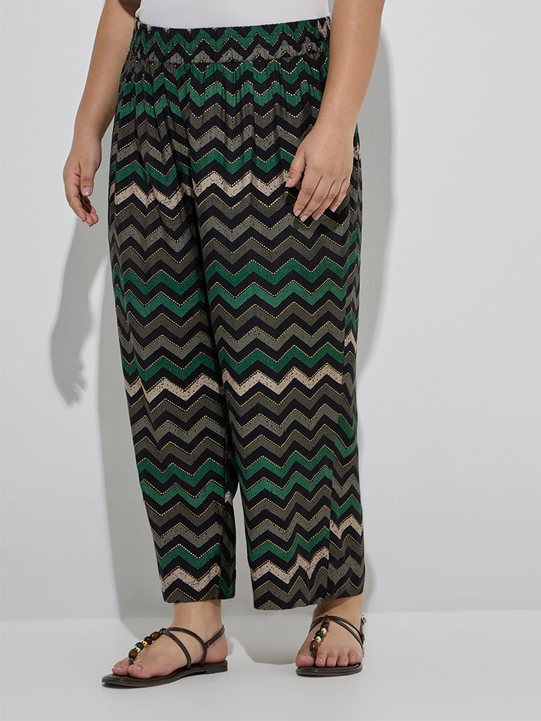 Step into supreme comfort and distinctive style with these black ethnic pants from Diza. Fashioned from a luxuriously soft fabric, they promise ultimate wearability. Their elasticated waistband and adjustable drawstrings ensure a bespoke fit, while the captivating chevron print elevates their design.