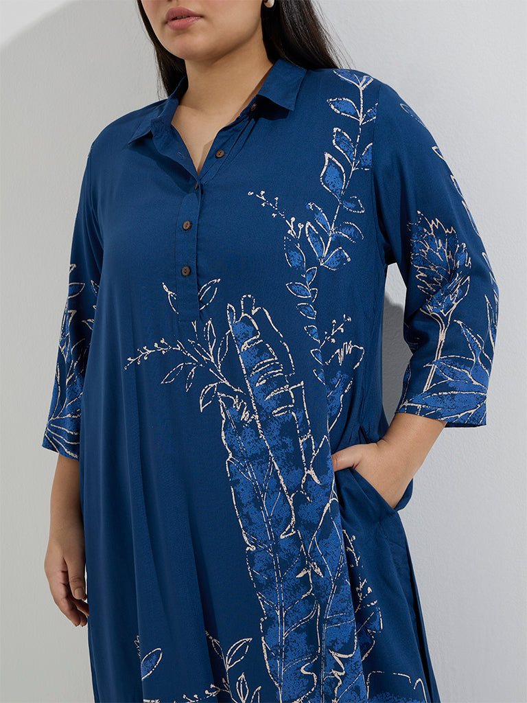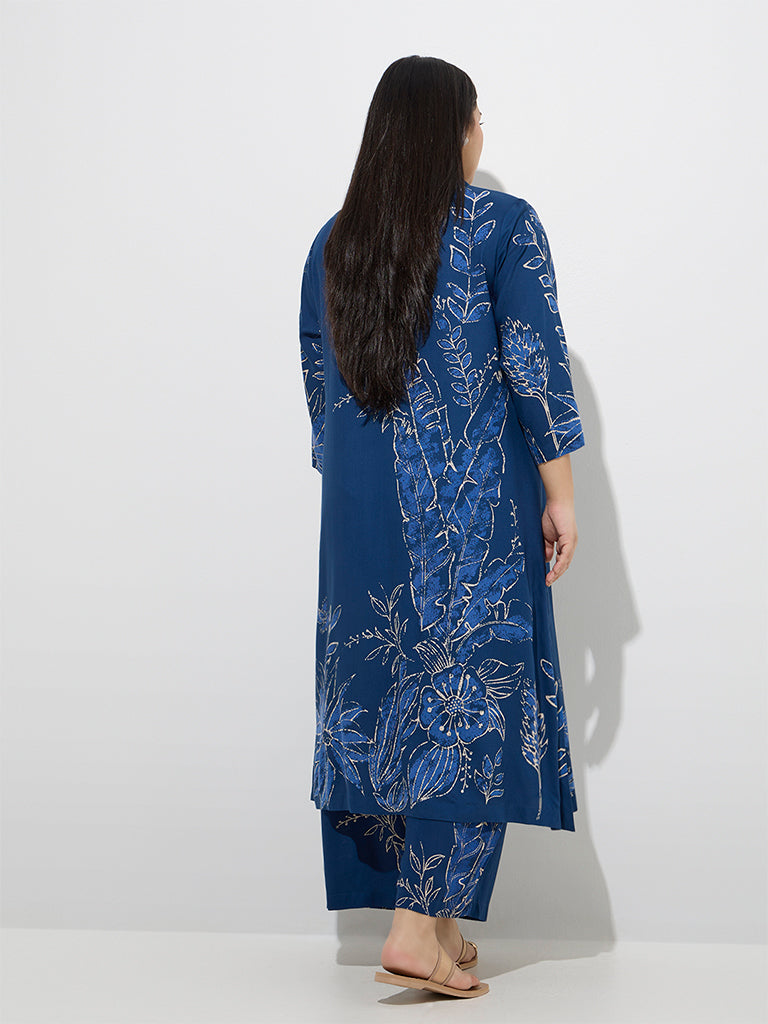 Diza Indigo Botanical Pattern A-Line Kurta