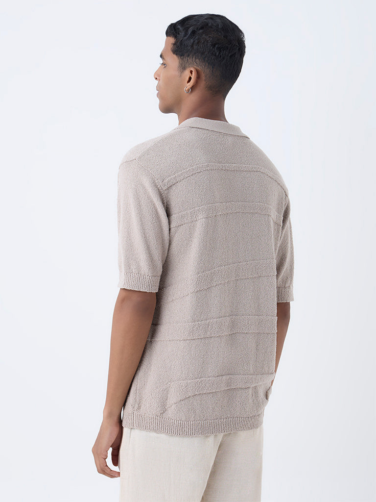 ETA Beige Self-Striped Relaxed-Fit Cotton Polo T-Shirt