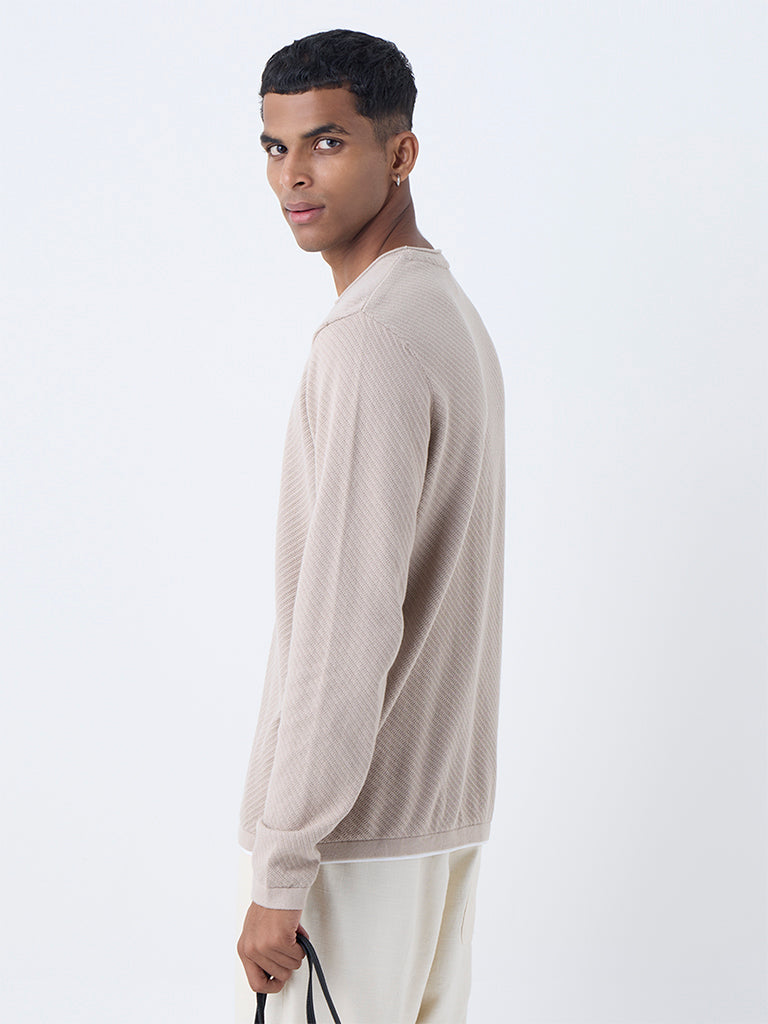 ETA Beige Textured Relaxed-Fit Cotton Sweater