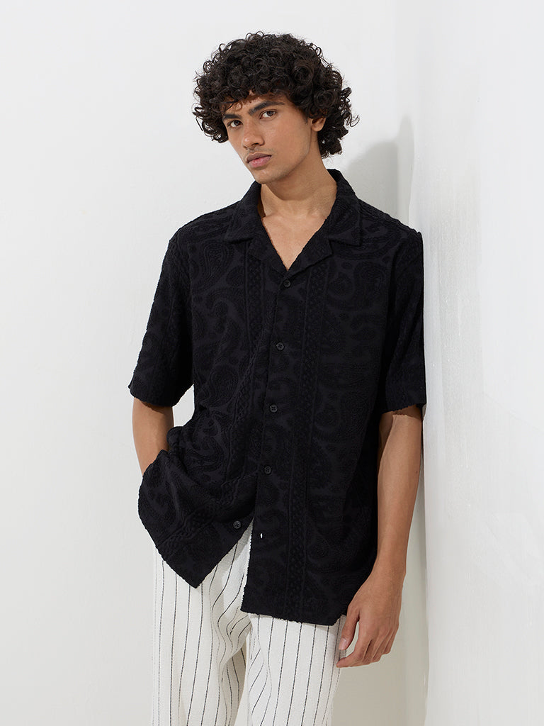 ETA Black Paisley Design Relaxed-Fit Cotton-Blend Shirt