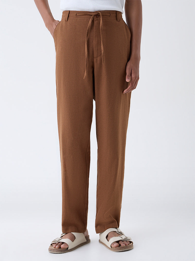 ETA Brown Solid Relaxed-Fit Mid-Rise Cotton-Blend Chinos