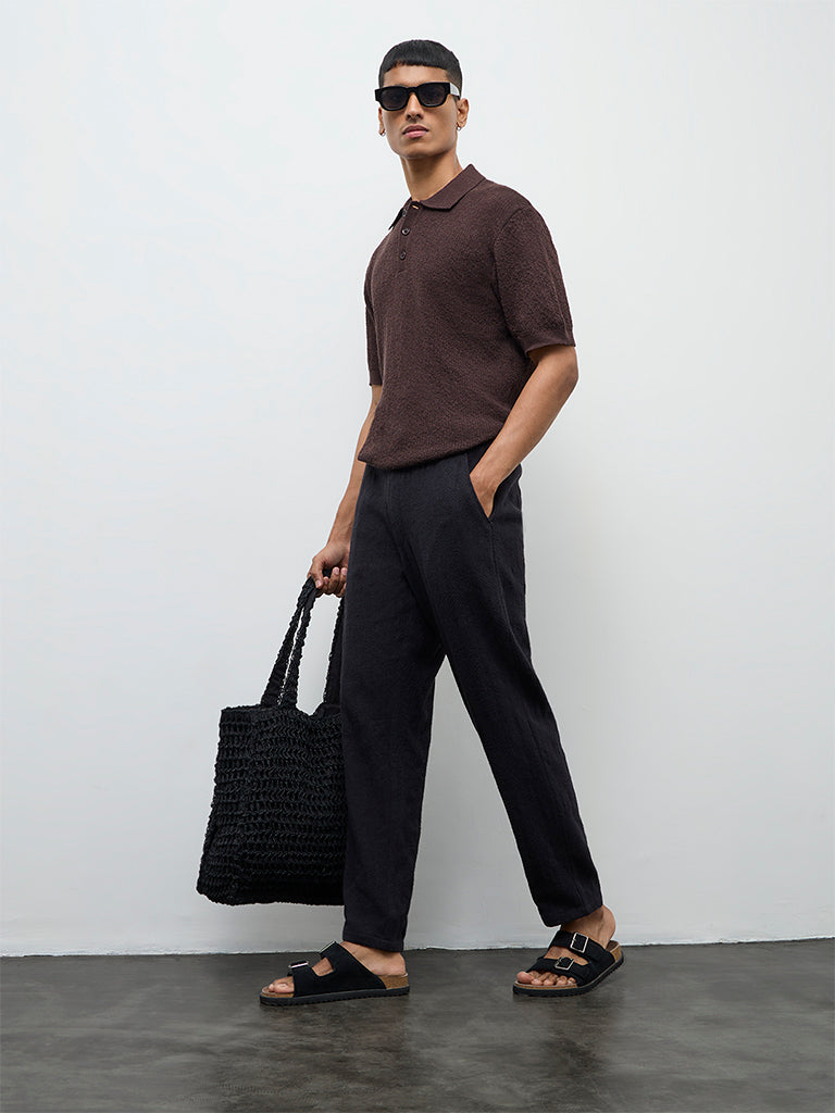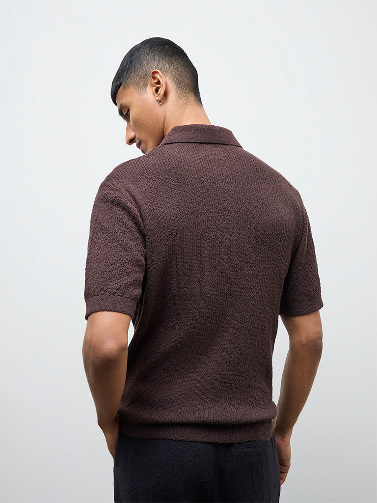 ETA Dark Brown Textured Relaxed-Fit Polo T-Shirt
