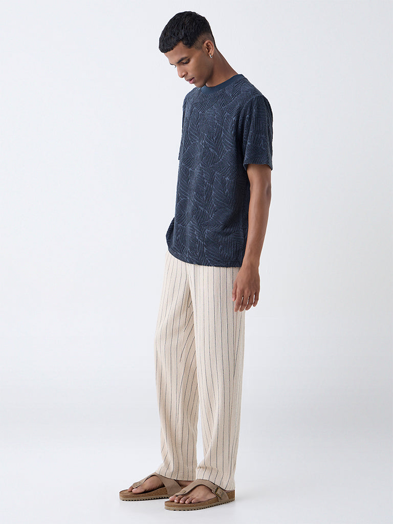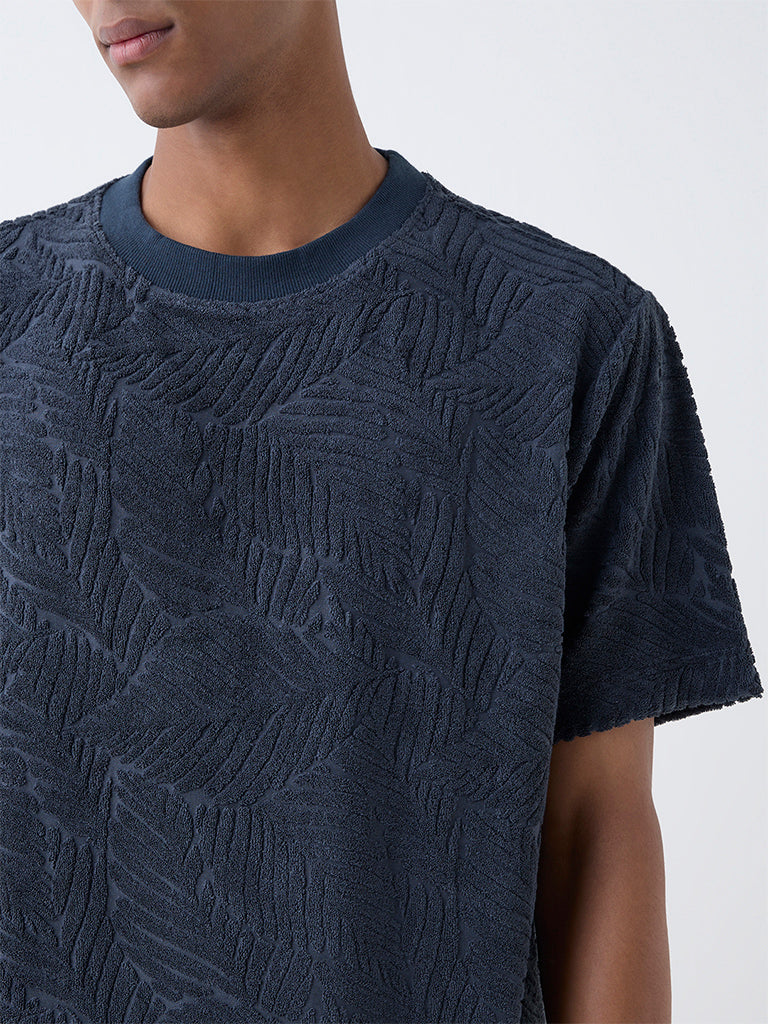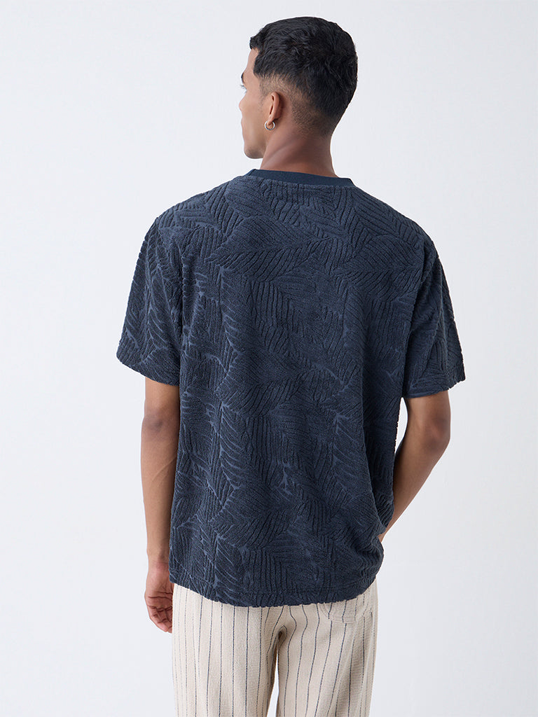 ETA Dark Grey Leaf Design Relaxed Fit Cotton-Blend T-Shirt