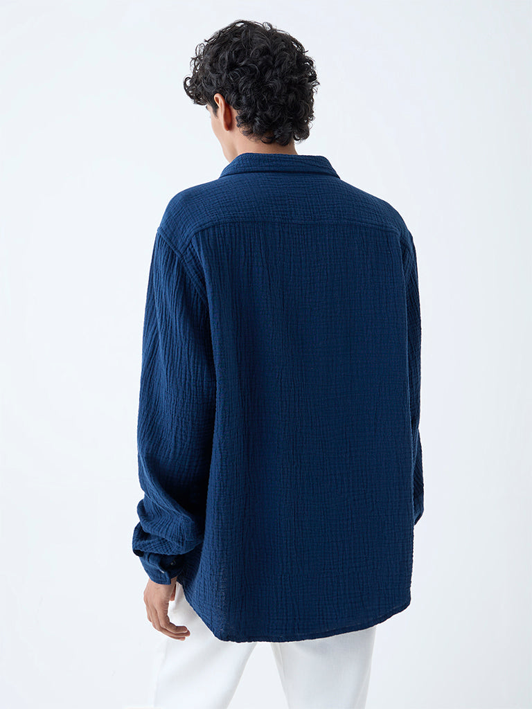 ETA Indigo Crinkle-Textured Relaxed-Fit Cotton Shirt